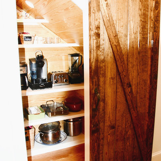 A walk in pantry is more of a closet designed to store dry goods. It definitely includes a door to keep it separate from the kitchen and a popular trend to date is a sliding barn door to do the job. Walk in pantries range in size and cost due to details like what type of shelving is used and how it's arranged. If you have the room and can include electrical outlets in your pantry, small appliances can also be stored in here just like in a butler's pantry. Below is a pic of a remodel project I worked on a few years ago where the homeowner carved out some space underneath her stairs to create an adorable functional pantry. Note the toaster and coffee station.